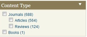 Most searches in Project Muse will be for articles. However, there are other content types which may be searched as well.